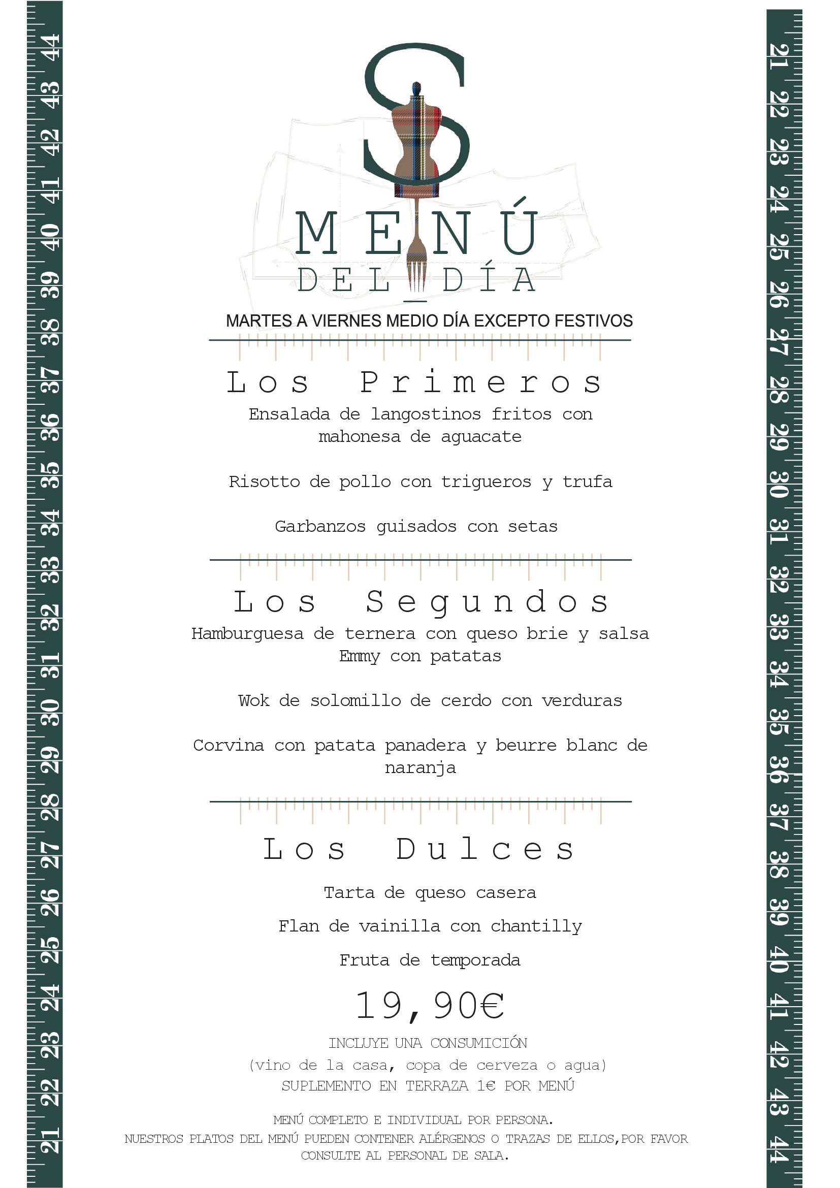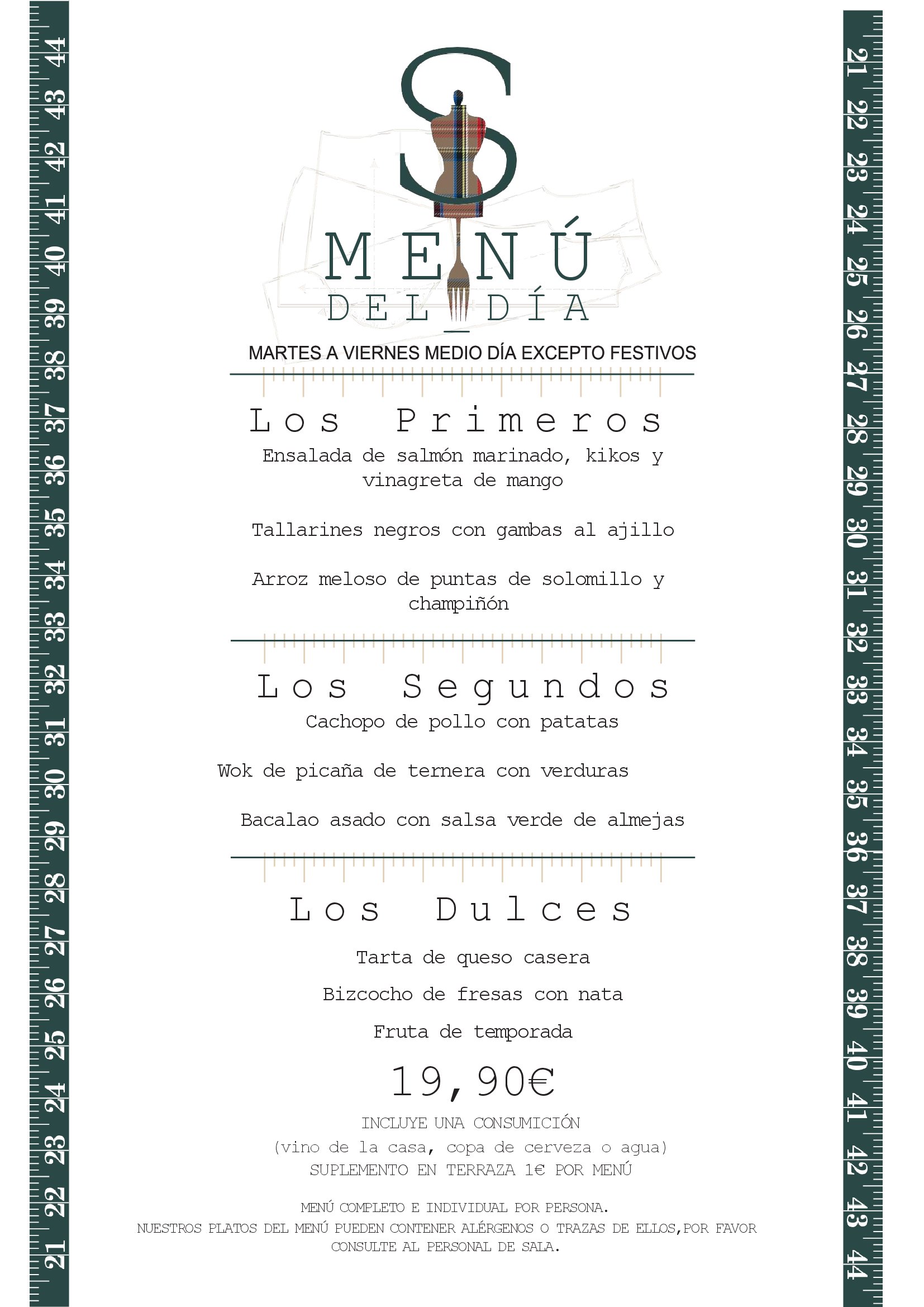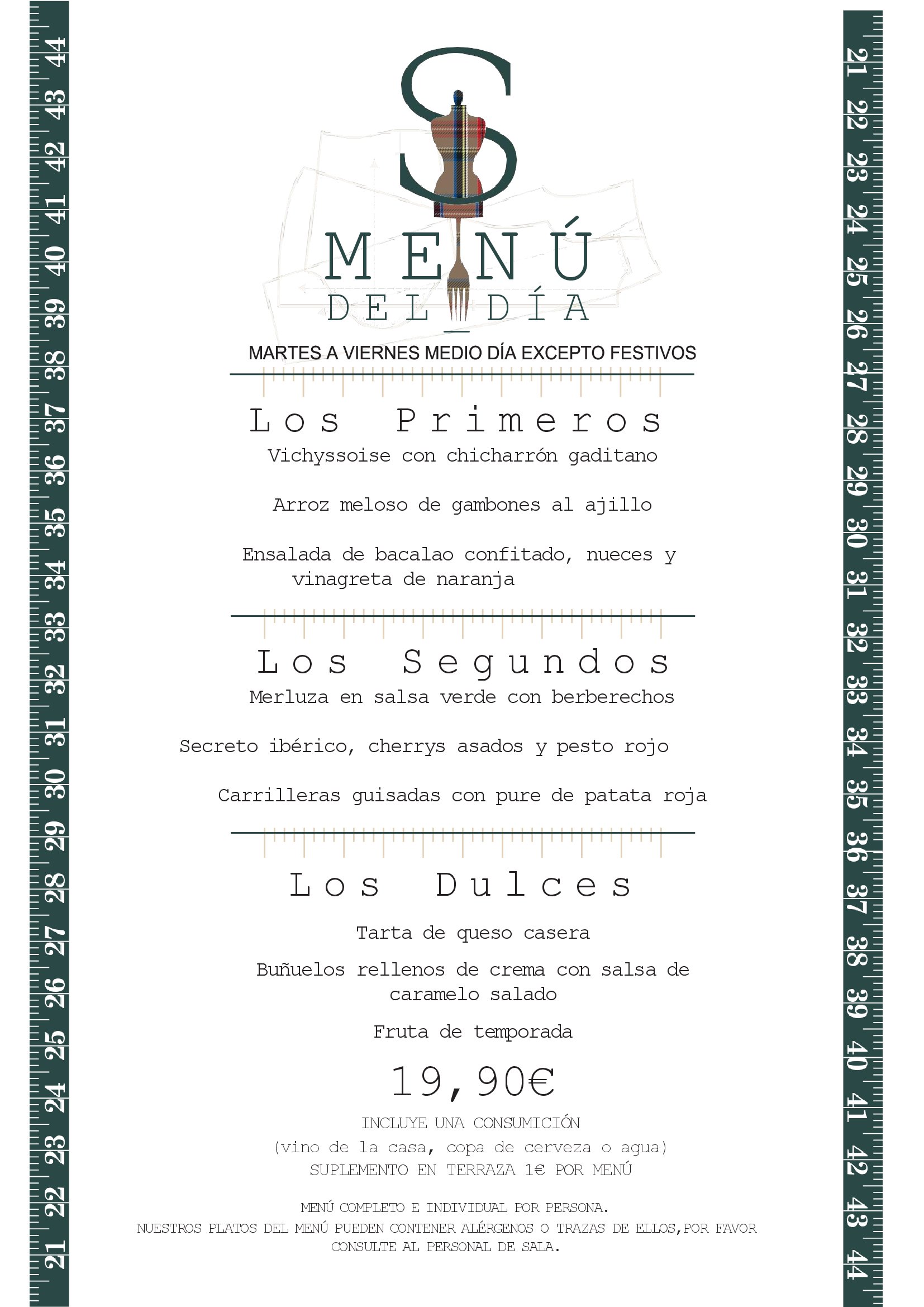 NUESTROS PLATOS DEL MENÚ PUEDEN CONTENER ALÉRGENOS O TRAZAS DE ELLOS.