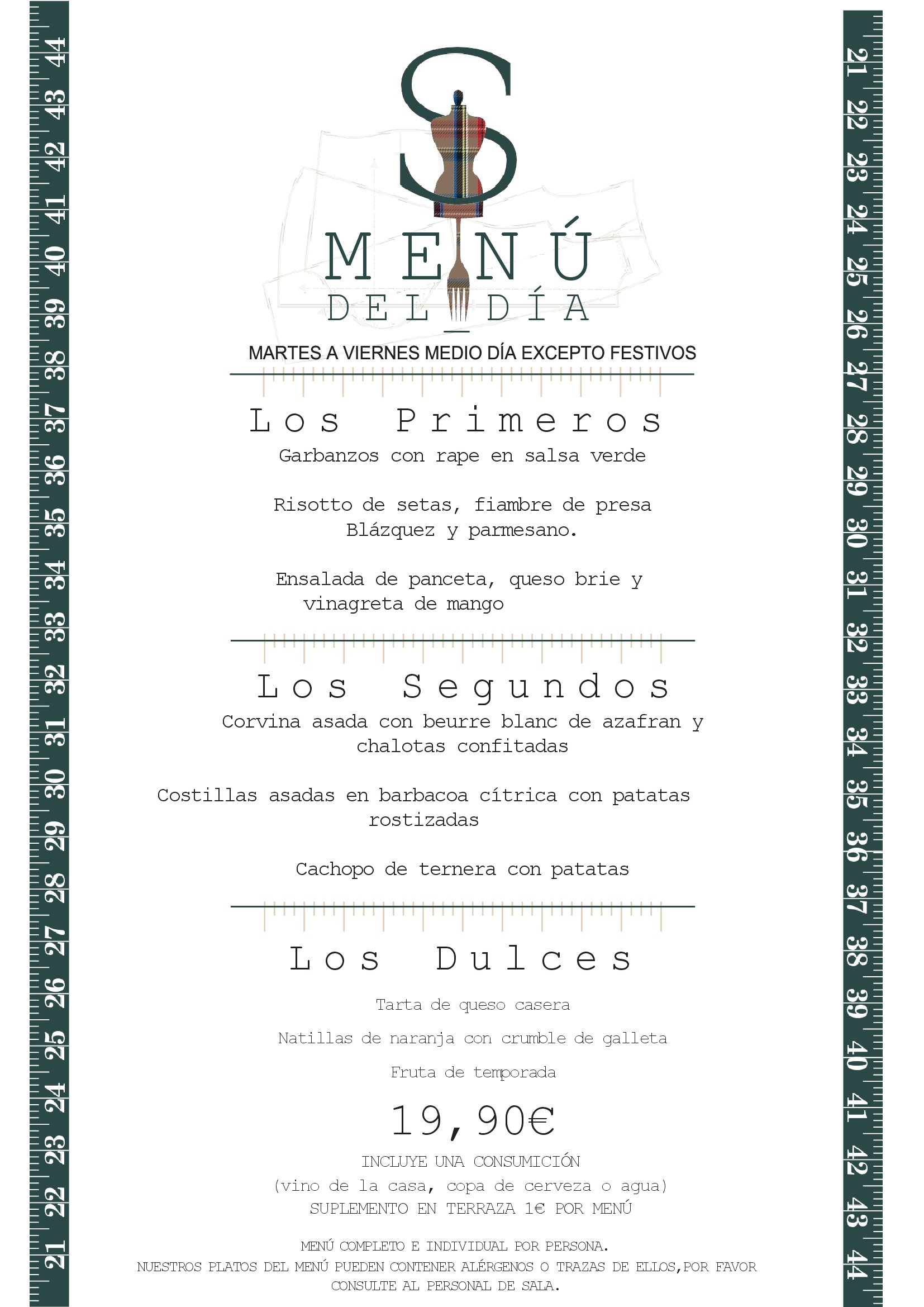 NUESTROS PLATOS DEL MENÚ PUEDEN CONTENER ALÉRGENOS O TRAZAS DE ELLOS.